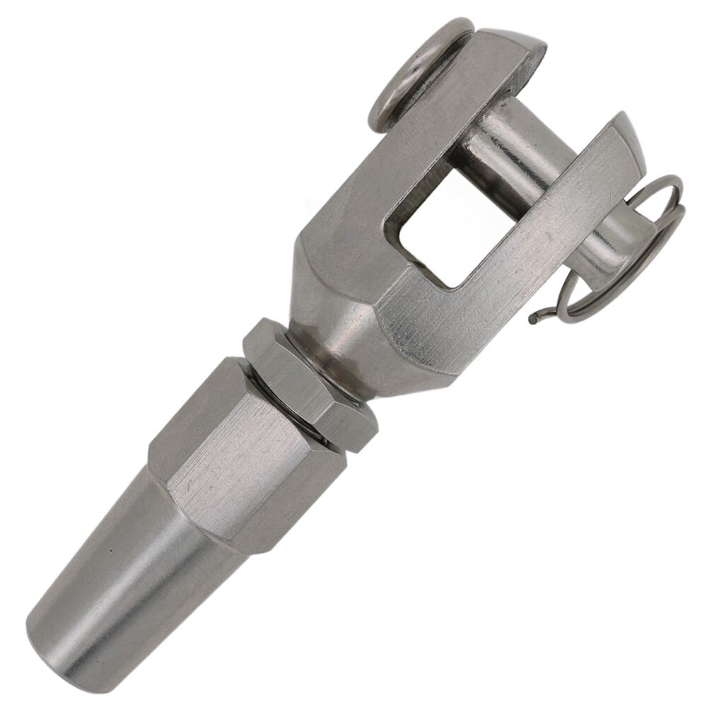 Check out the reliable, A4 grade stainless steel swageless jaw terminals available from GS Products. This 3mm diy swageless fork terminal has a polished finish and is easy to install, with no need for swaging.