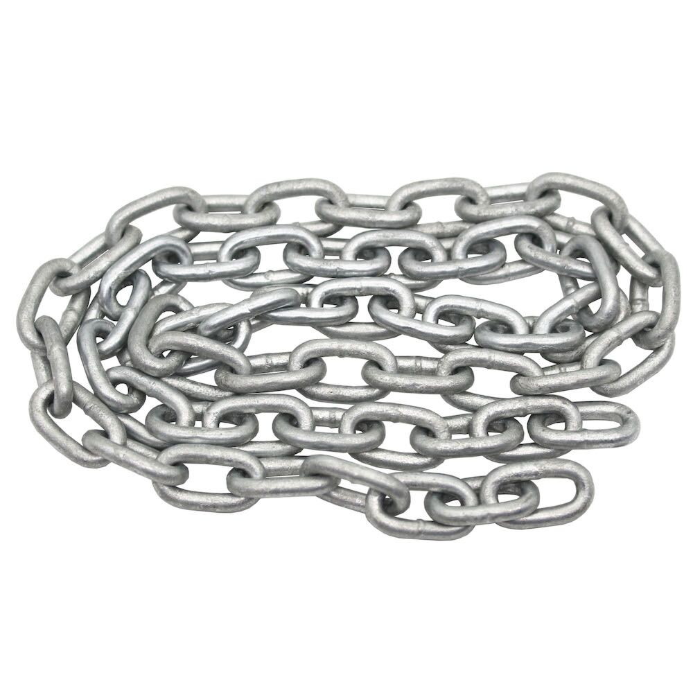 The 6mm diameter hot dipped galvanised steel chain can be used with playground equipment, mooring, anchor chain or general use.