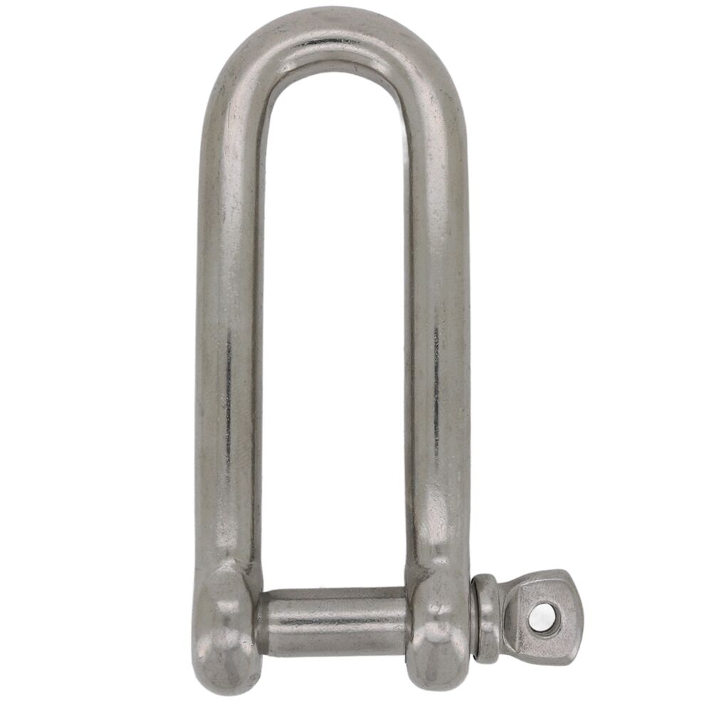 GS Products offer 8mm stainless steel long D shackles with removable pins and polished finish.
