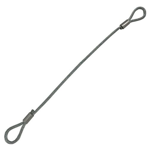 2mm diameter flexible galvanised steel wire rope with 20mm eyelets (approx)