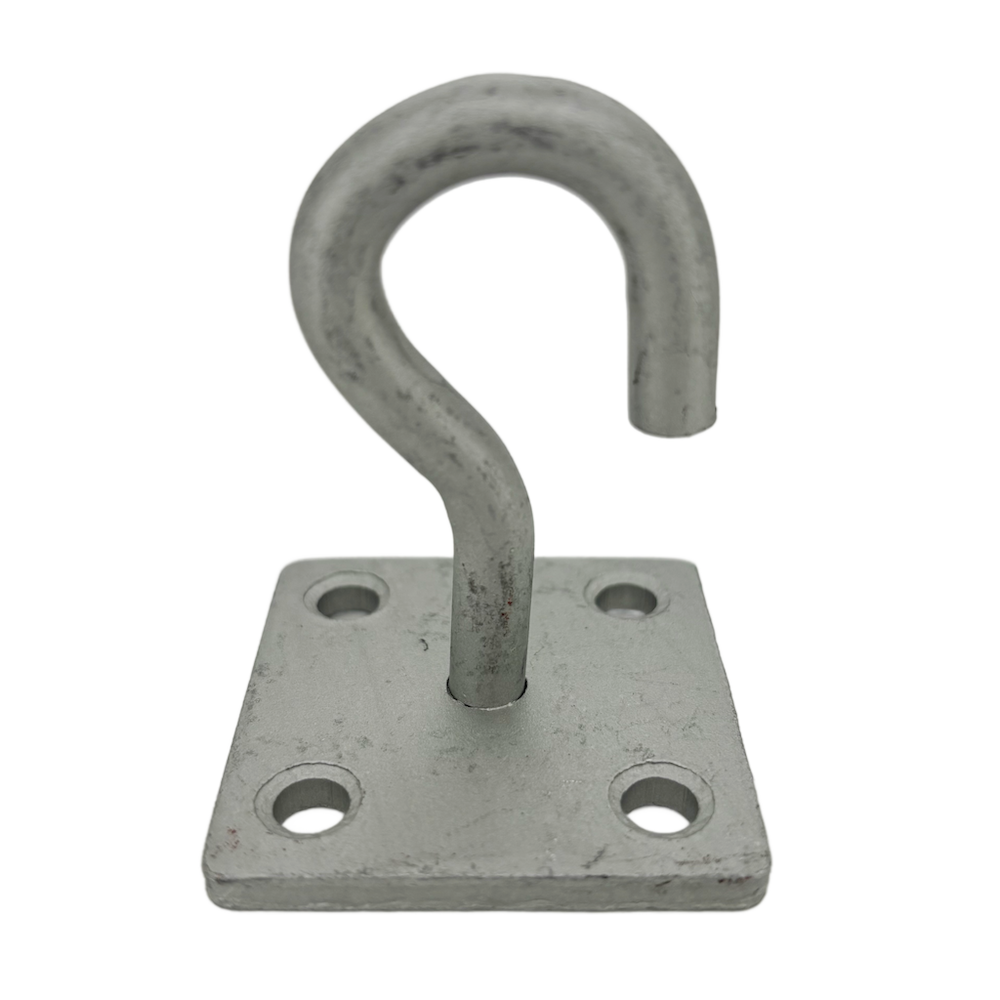Our hook on plates are very strong and can be used for many applications such as animal tethers, garden post, chain hooks etc..