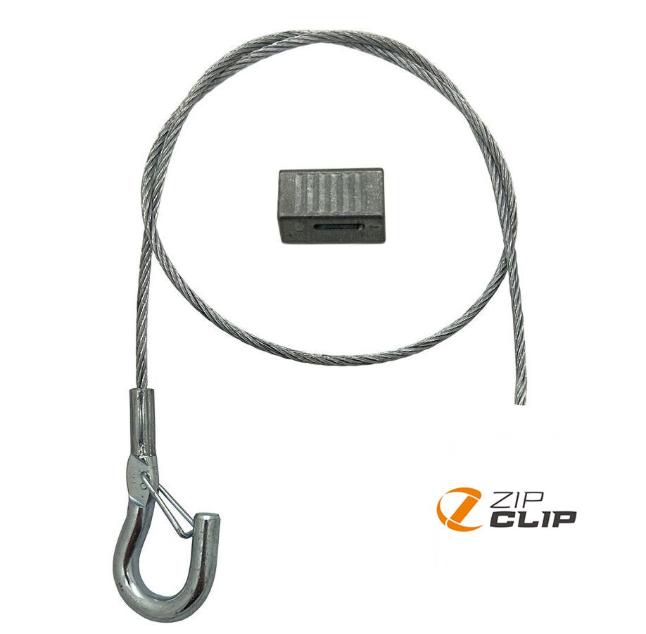 This loop hanging system comes with a pre-swaged hook that is securely attached to the wire rope and a Zip-Clip so you can easily create a loop on-site to your desired length.