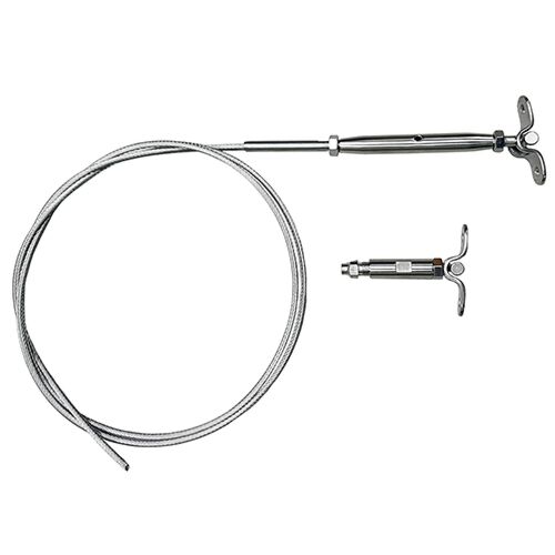 - A 10 meter run of 4mm 1x19 stainless steel wire rope pre swaged onto an adjustable toggle rigging screw. The rigging screw comes with locking nuts, adjustment can be easily made by rotating the body clockwise or anti-clockwise.